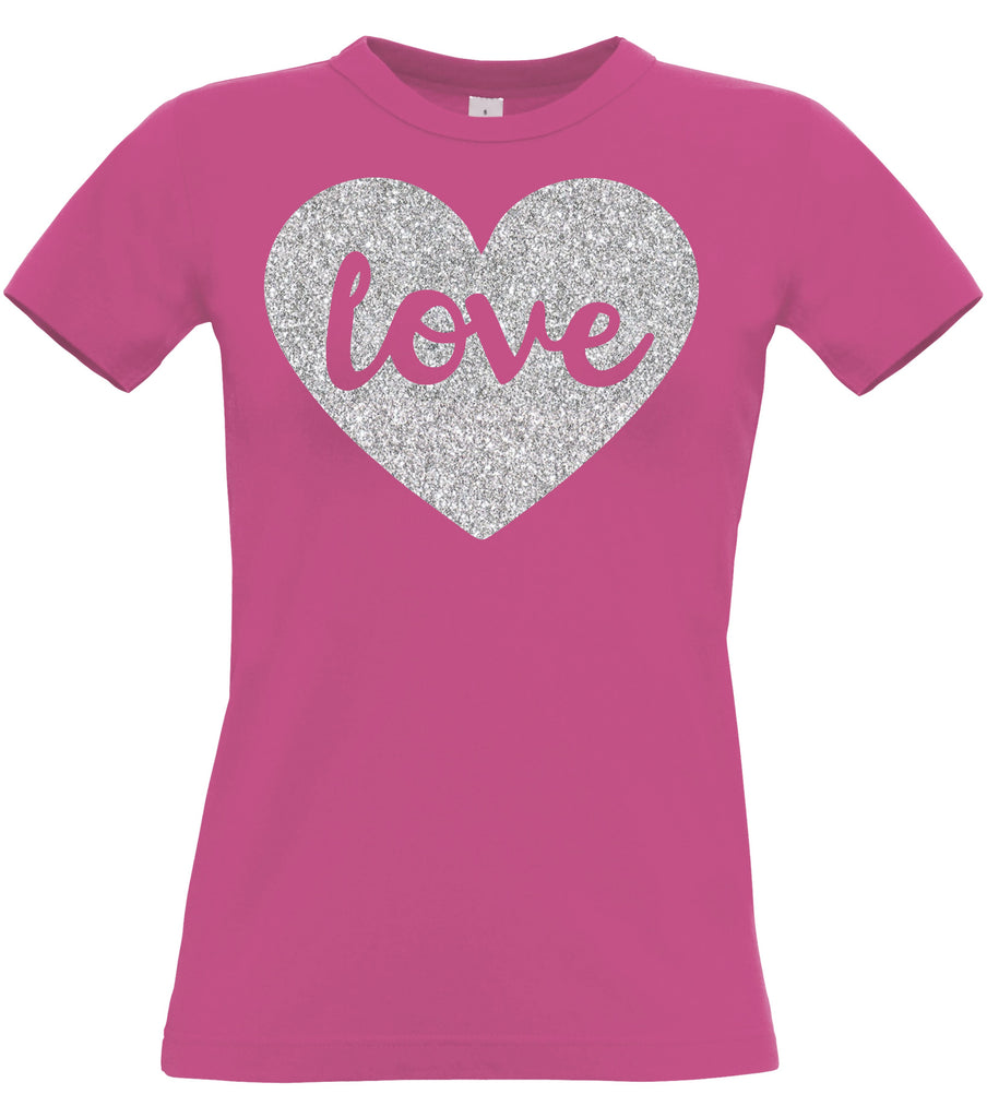 Love T-shirt ajusté pour femme avec imprimé argenté étincelant