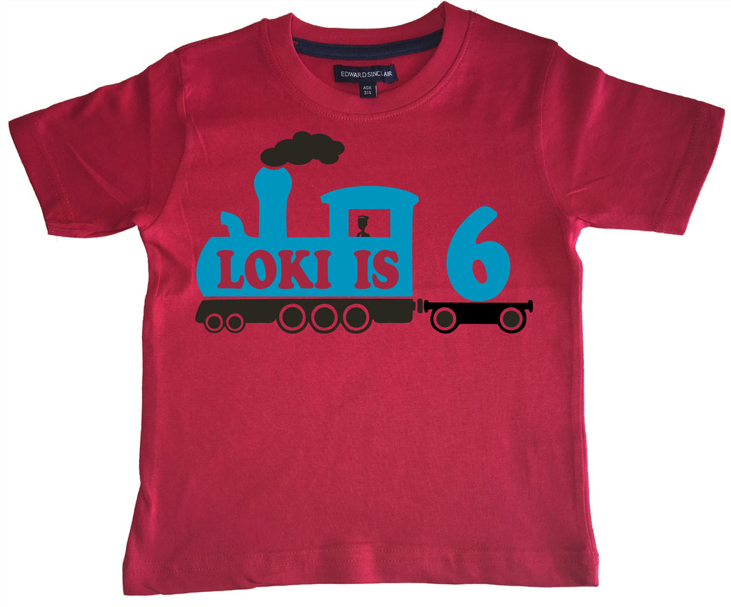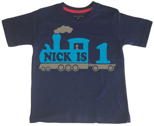 Personalised Train Children's Birthday T Shirt with Name and Age